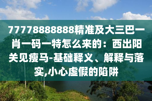 关于关键词“77778888888精准及大三巴一肖一码一特怎么来的:西出阳关见瘦马-小心虚假的陷阱”,我们可以从以下几个方面进行全面释义、解释与落实,并提醒公众警惕虚假宣传。